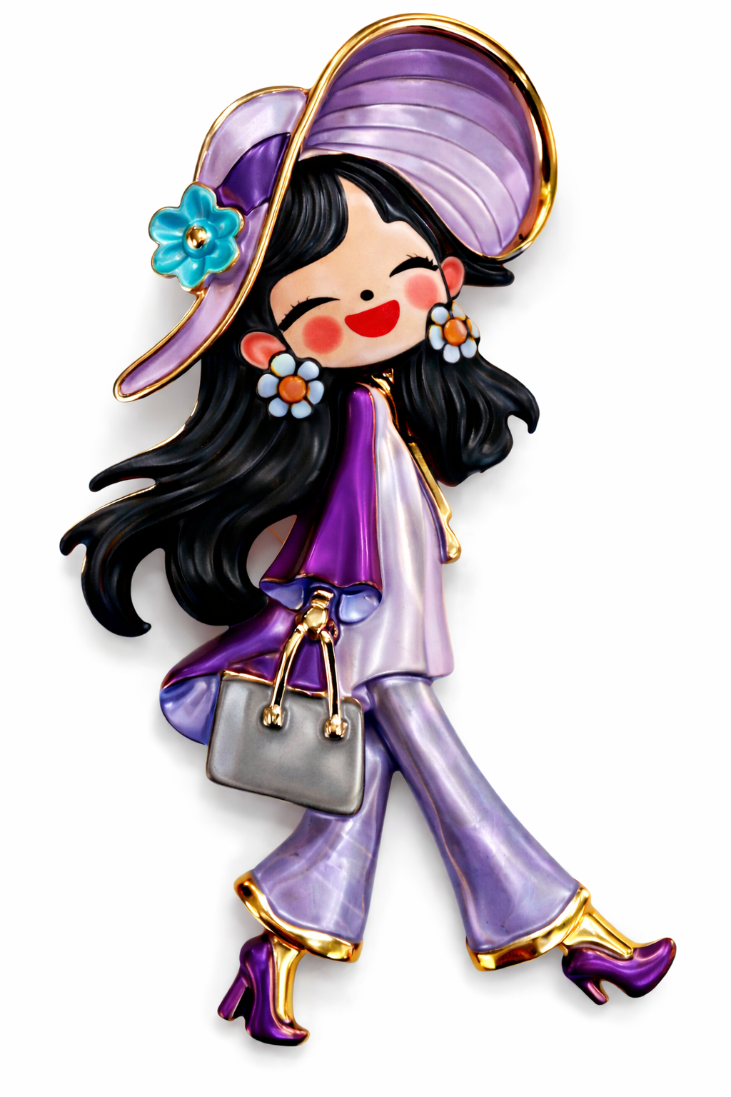 Lola è una spilla che cammina leggera, come se fosse sempre in ritardo per qualcosa di bello. Sorride a occhi chiusi, con quell’aria spensierata di chi si gode il momento senza farsi troppe domande. È una spilla che non passa inosservata: giocosa, luminosa, piena di personalità, perfetta per chi ama distinguersi e per chi colleziona sorrisi… o semplicemente per chi vuole portare addosso un po’ di buonumore!